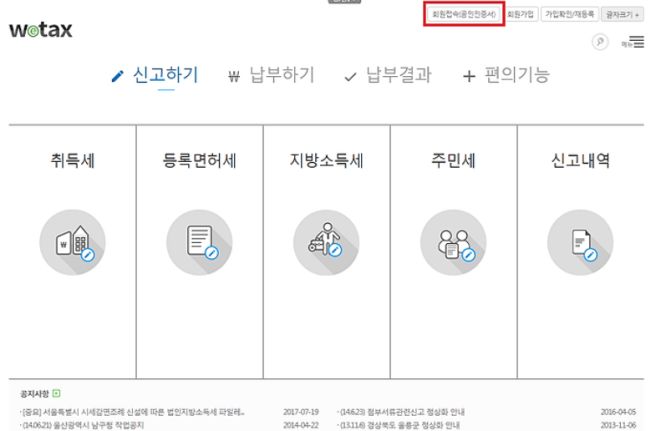 - 위택스 / 이택스 온라인 납부
