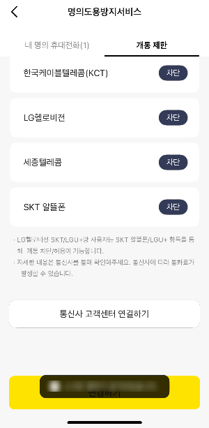 내 명의로 개통된 휴대폰 회선을 한 번에 확인할 수 있습니다. - 개통 제한 설정:
